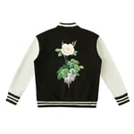 This limited varsity jacket combines fashion and warmth with its cozy fleece lining. Featuring contrasting color stripes on the sleeves, collar, and hem, it delivers a classic varsity look.